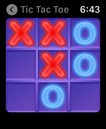 Classic Tic Tac Toe game with options to turn on/off sound and selection of starting player (User, Watch, Alternate, Random). Statistics screen to display number of wins, losses, and draws.